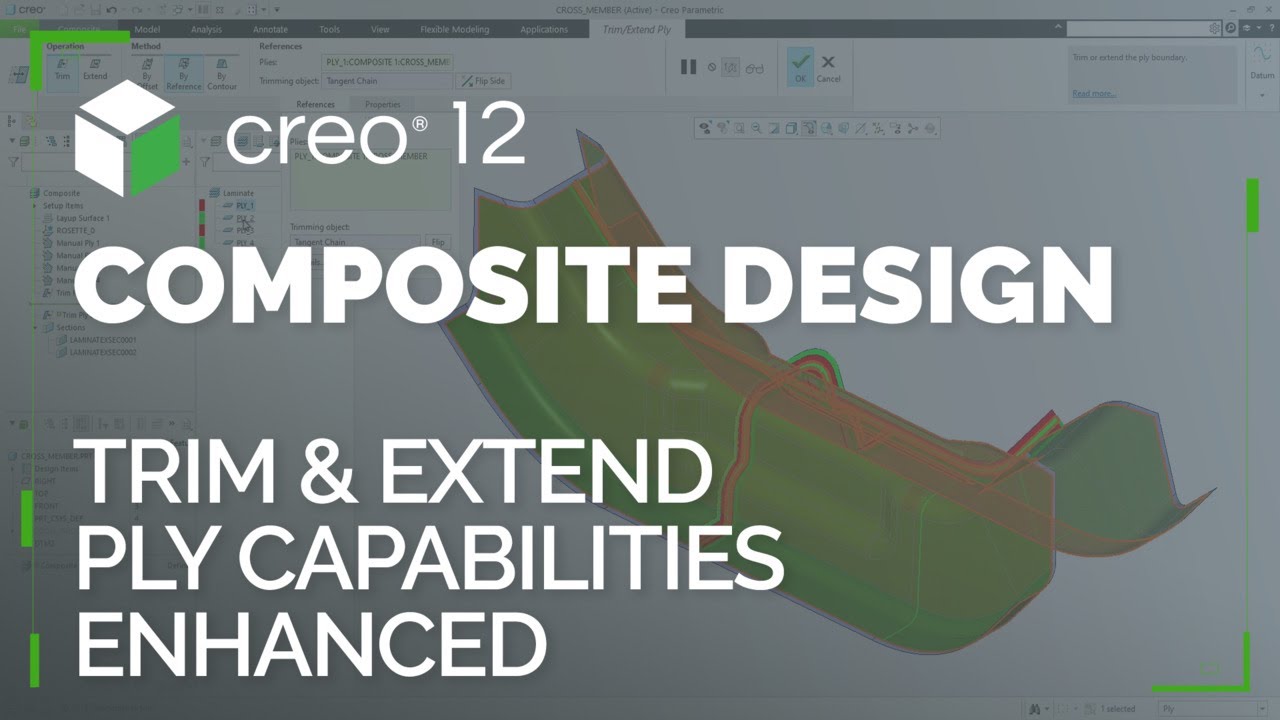 Trong Creo 12, bạn hiện có thể cắt (trim) ranh giới của các lớp ply và lõi (core) bằng cách xác định giá trị offset, đối tượng tham chiếu hoặc đường bao (contour).
